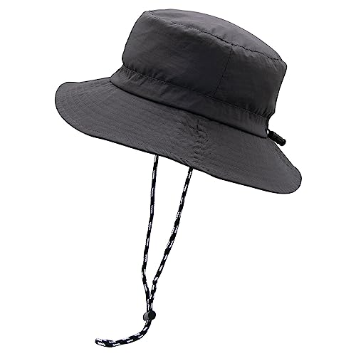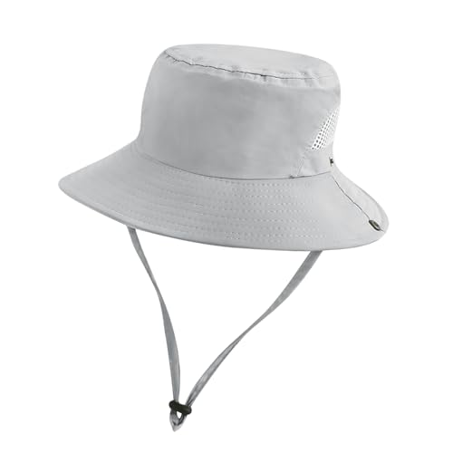YAMEIZE Summer Adjustable Waterproof Bucket Hat - with String for Women Men Kid Adult UV Protection String Strap Hat Fishing Hiking Climbing (Grey Kid)