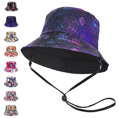 YAMEIZE Summer Adjustable Waterproof Bucket Hat - with String for Women Men Kid Adult UV Protection String Strap Hat Fishing Hiking Climbing
