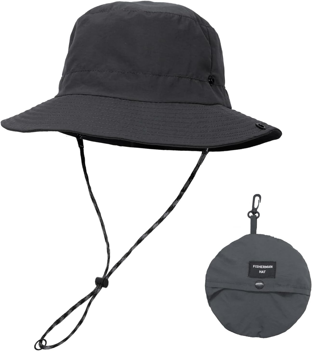 YAMEIZE Summer Bucket Hat Wite String - Waterproof for Women Men Safari Hat Adjustable Windproof UV400 Fishing Hat Beach Walking Climbing Grey