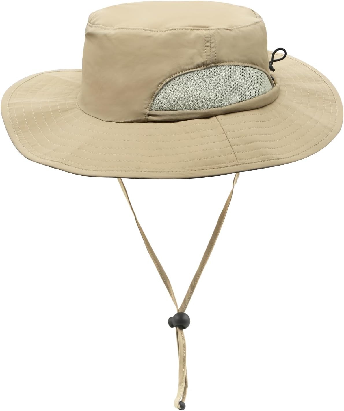 JAOAJ Mens Sun Hat Wide Brim Summer Safari Hat,Cotton Fishing Boonie Hat UV Hats,Breathable Mesh Bucket Gardening Hats with Adjustable Chin String Beige