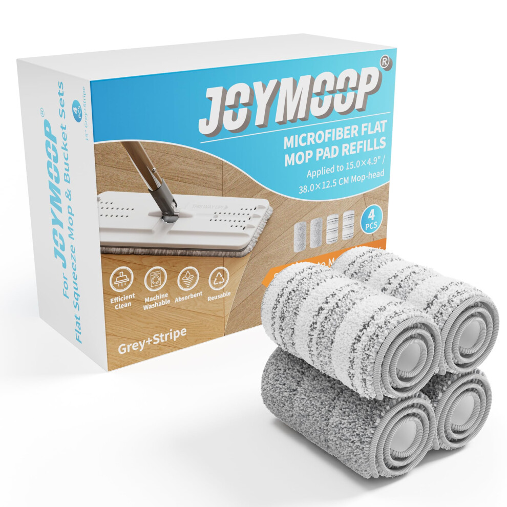 JOYMOOP Flat Mop Pads Microfiber Mop Cleaning Pads Washable Pads Pads Replacement for JOYMOOP Flat Mop or Mop Bucket Set Pack of 4 Refills 15inch