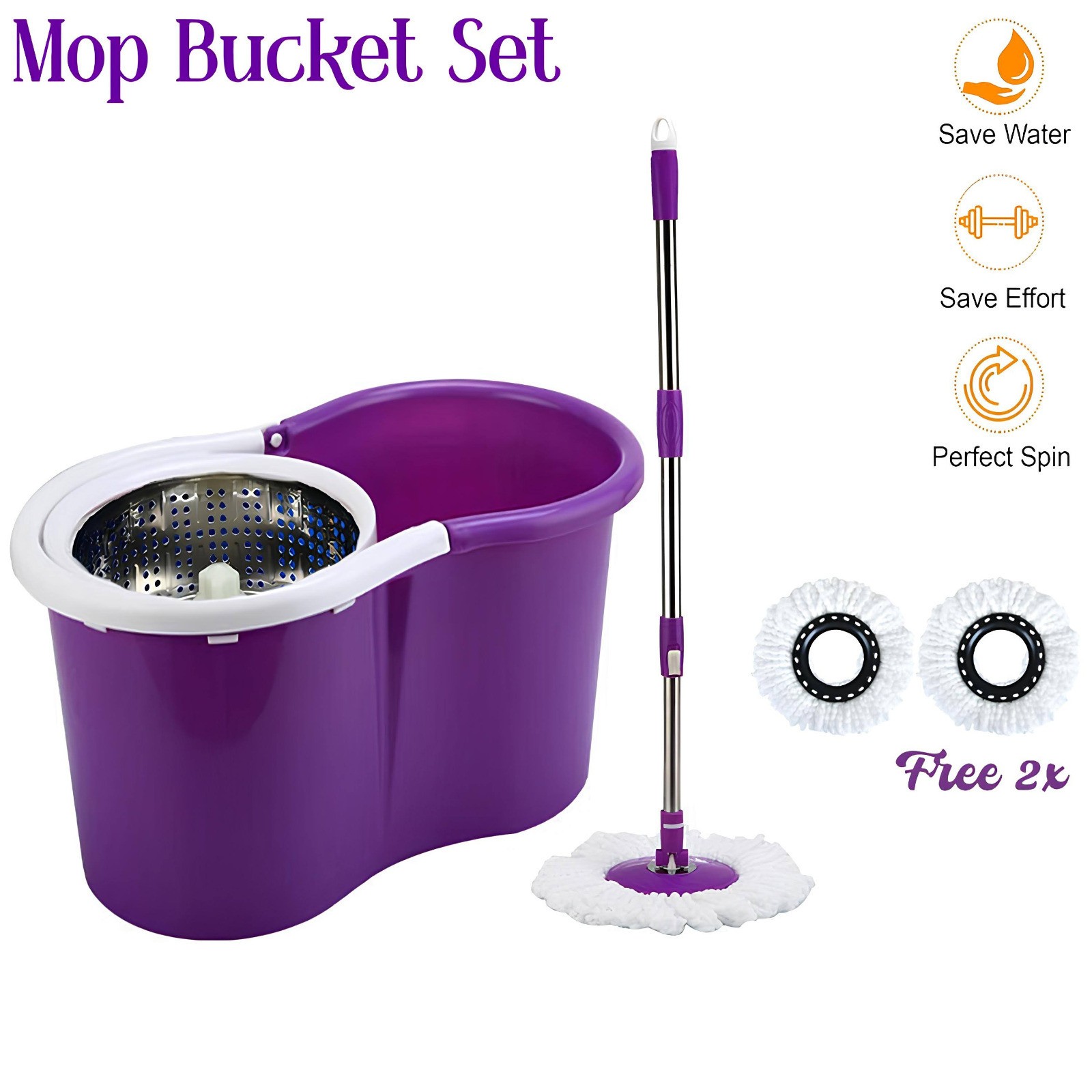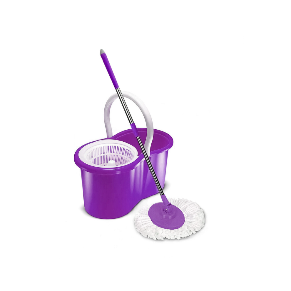 (PURPLE) 360° MOP BUCKET SET FLOOR MAGIC SPIN DRY MOP BUCKET SET WITH 2 MICROFIBER HEADS