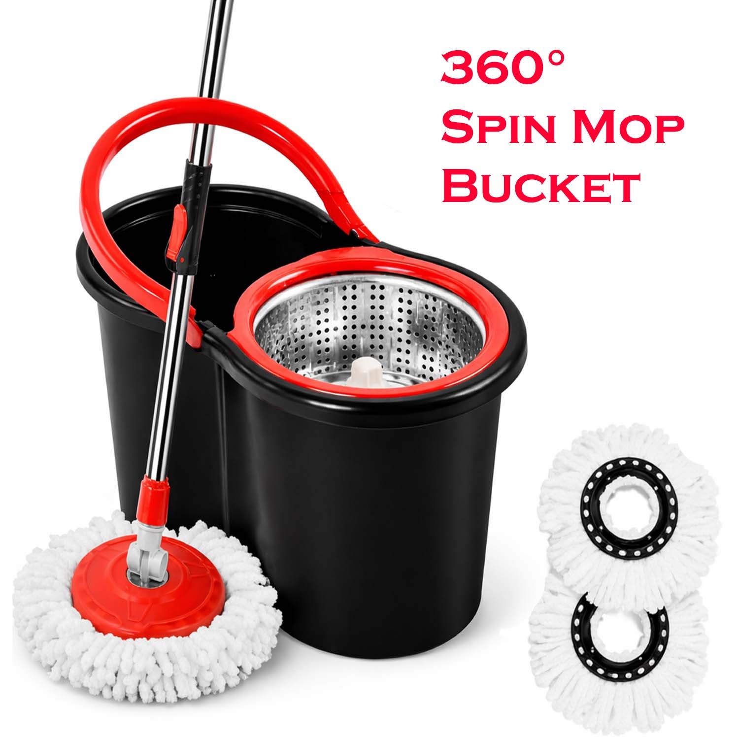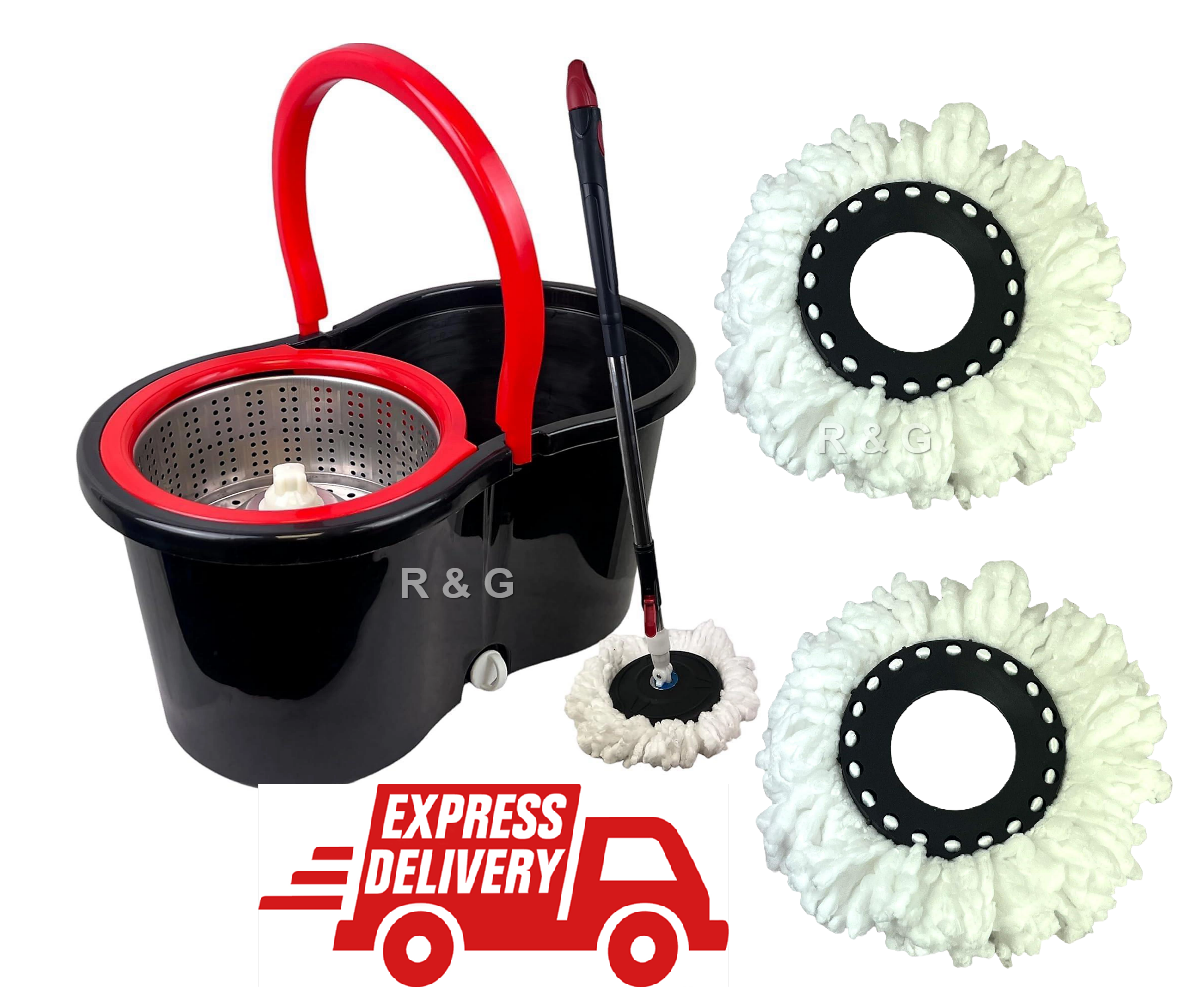 Spin Mop Bucket Set 360° Steel Wringer 2 Refill Microfibre Mop Heads Floor Mop