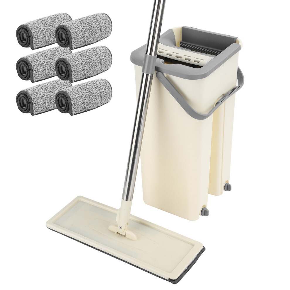 MASTERTOP Flat Mop and Buckets Sets, Compact Floor Mop Bucket Set with Wring & 6pcs Washable Pads, Microfibre Mops for Cleaning Tiled Marble Hardwood