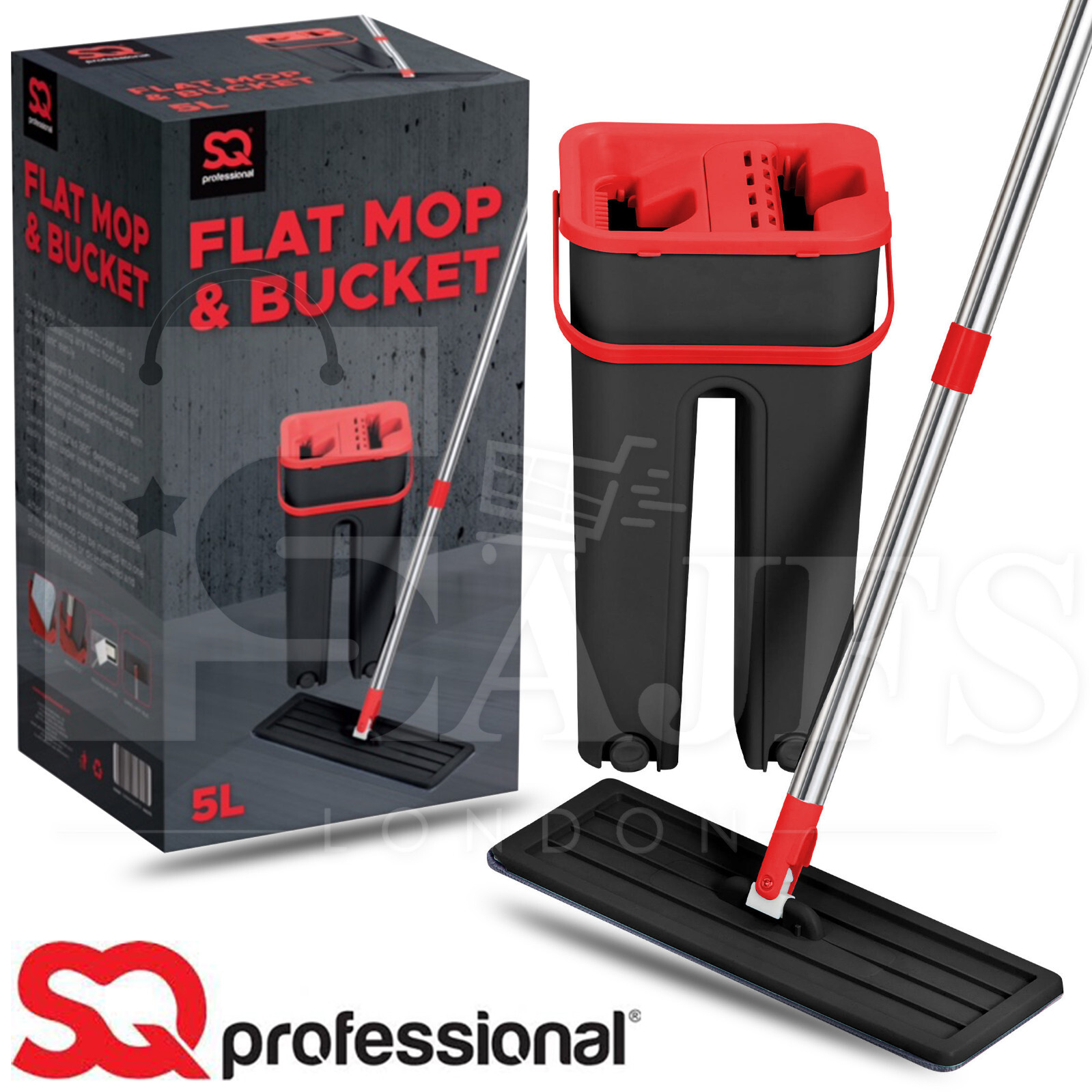 The Dustpan & Brush Store Flat Floor Mop and Bucket Set-Mop with Microfibre Pads