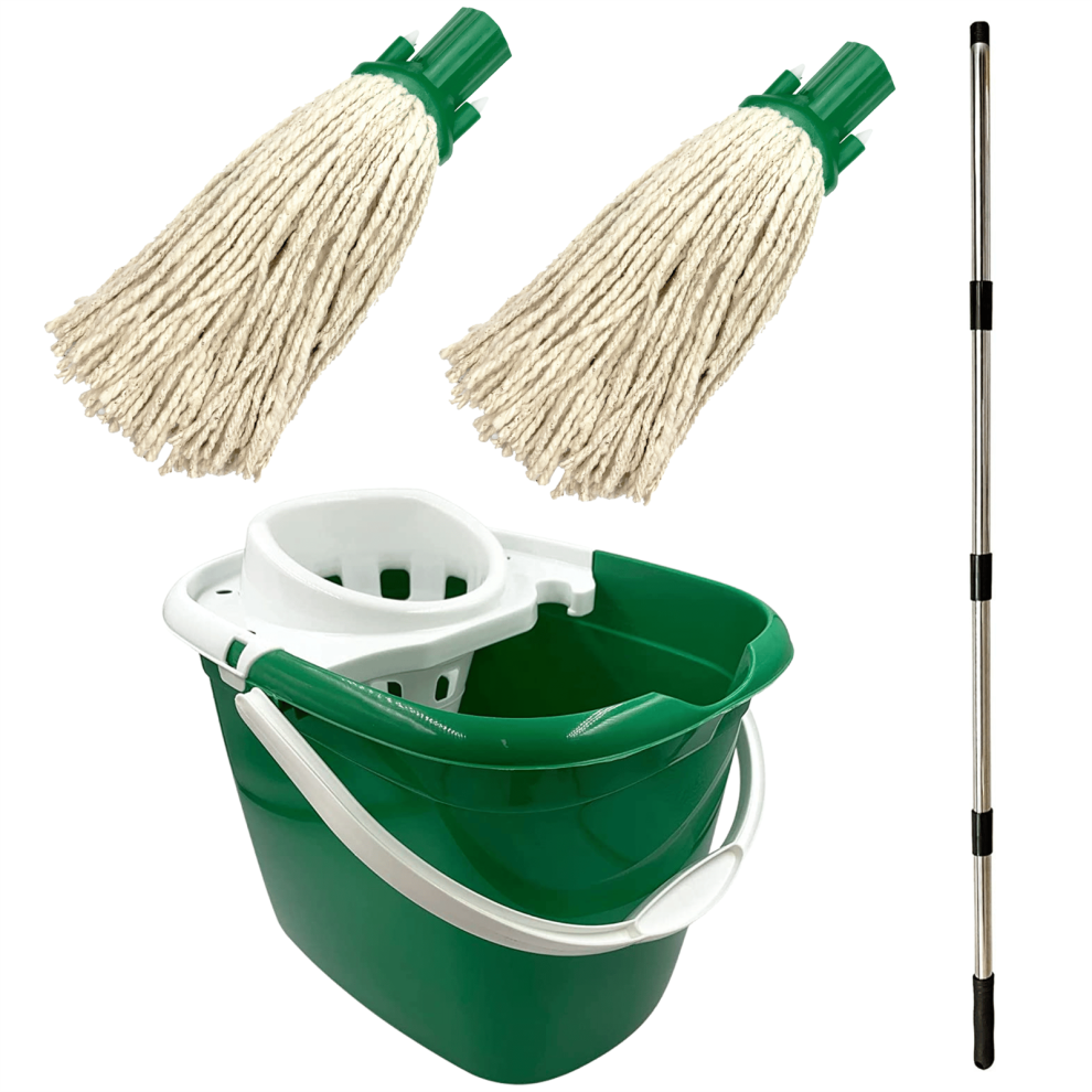 Floor Mop Bucket Set Cotton Heavy Duty 12L Wringer Industrial Plastic