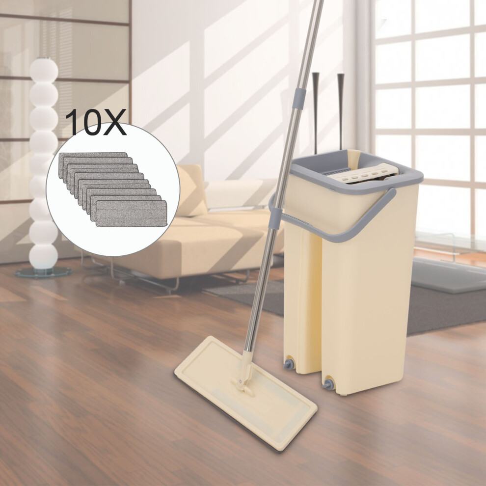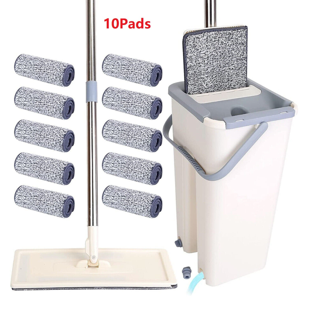 360° Flat Microfiber Mop Bucket Set&10xFloor Tiles Cleaning Pads