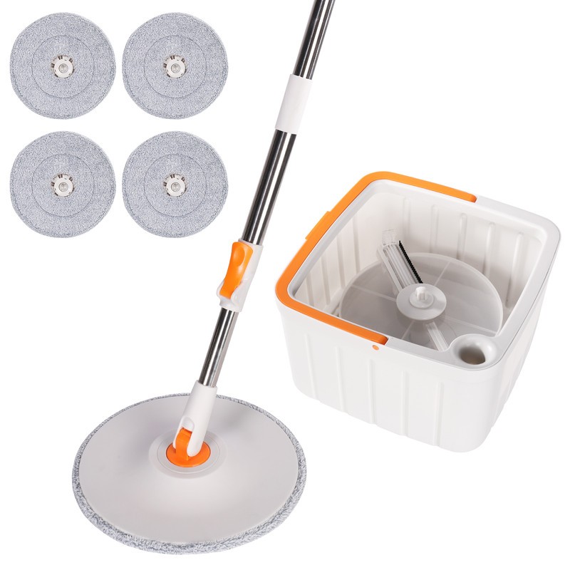 Cleaning Mop Bucket Set Floor Clean Mop 360° Rotate With Bucket 4 Cloth Pads