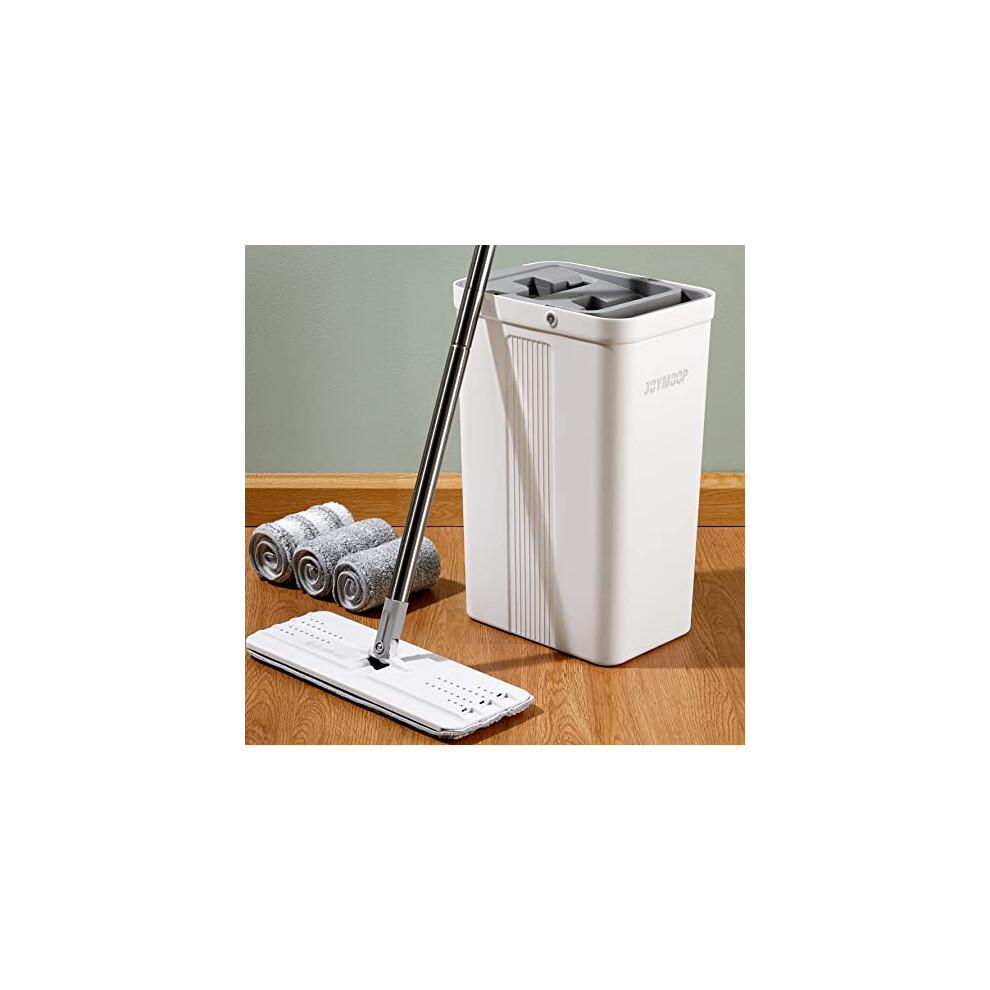 JOYMOOP Mop and Bucket with Wringer Set White Flat Squeeze Mop Bucket Set for Floor Cleaning Wet Dry Mop for Wall Cleaner with Long Handle Hardwood