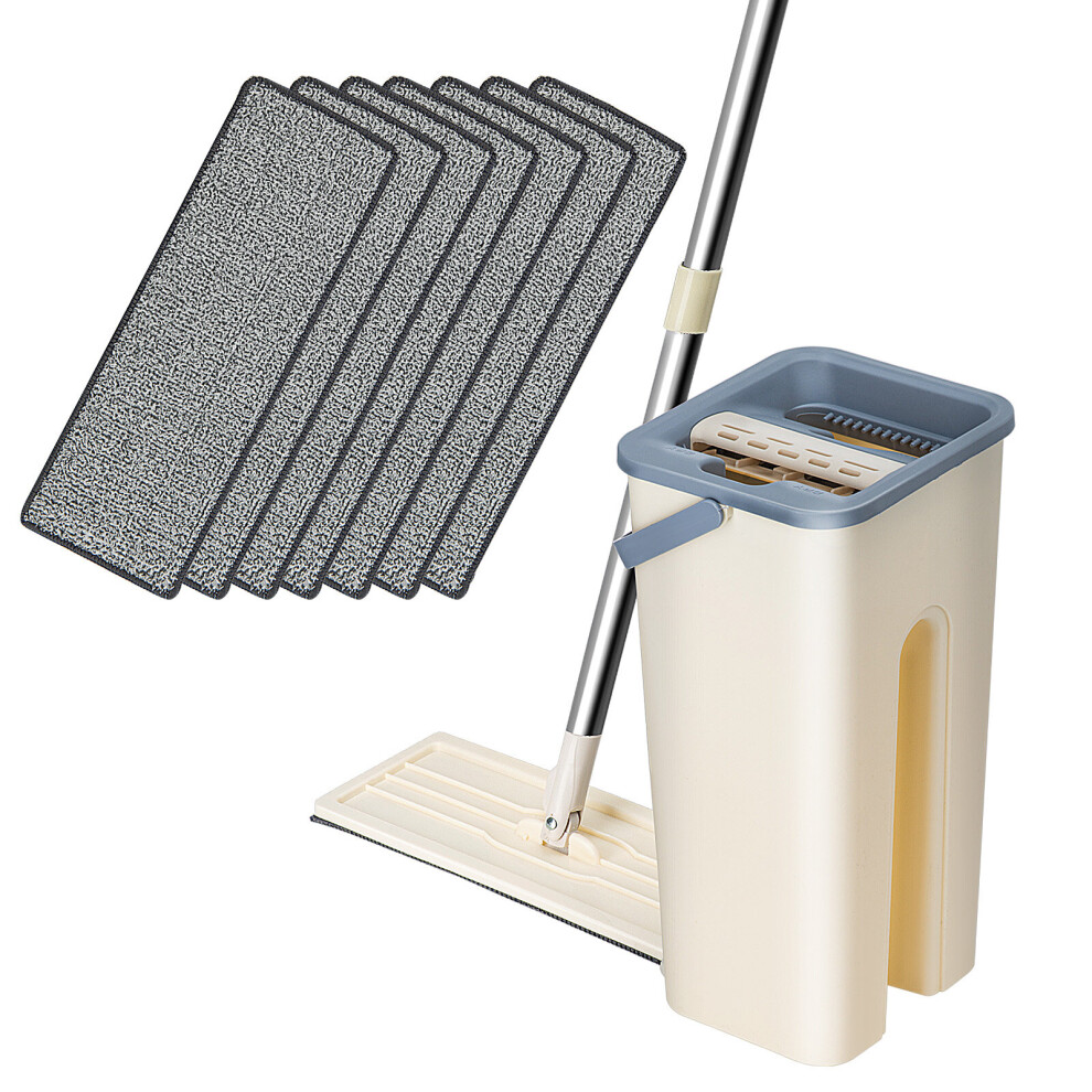 (1 Mop set + 7 Pads) 360° Flat Squeeze Microfiber Tilesr Mop Bucket Set