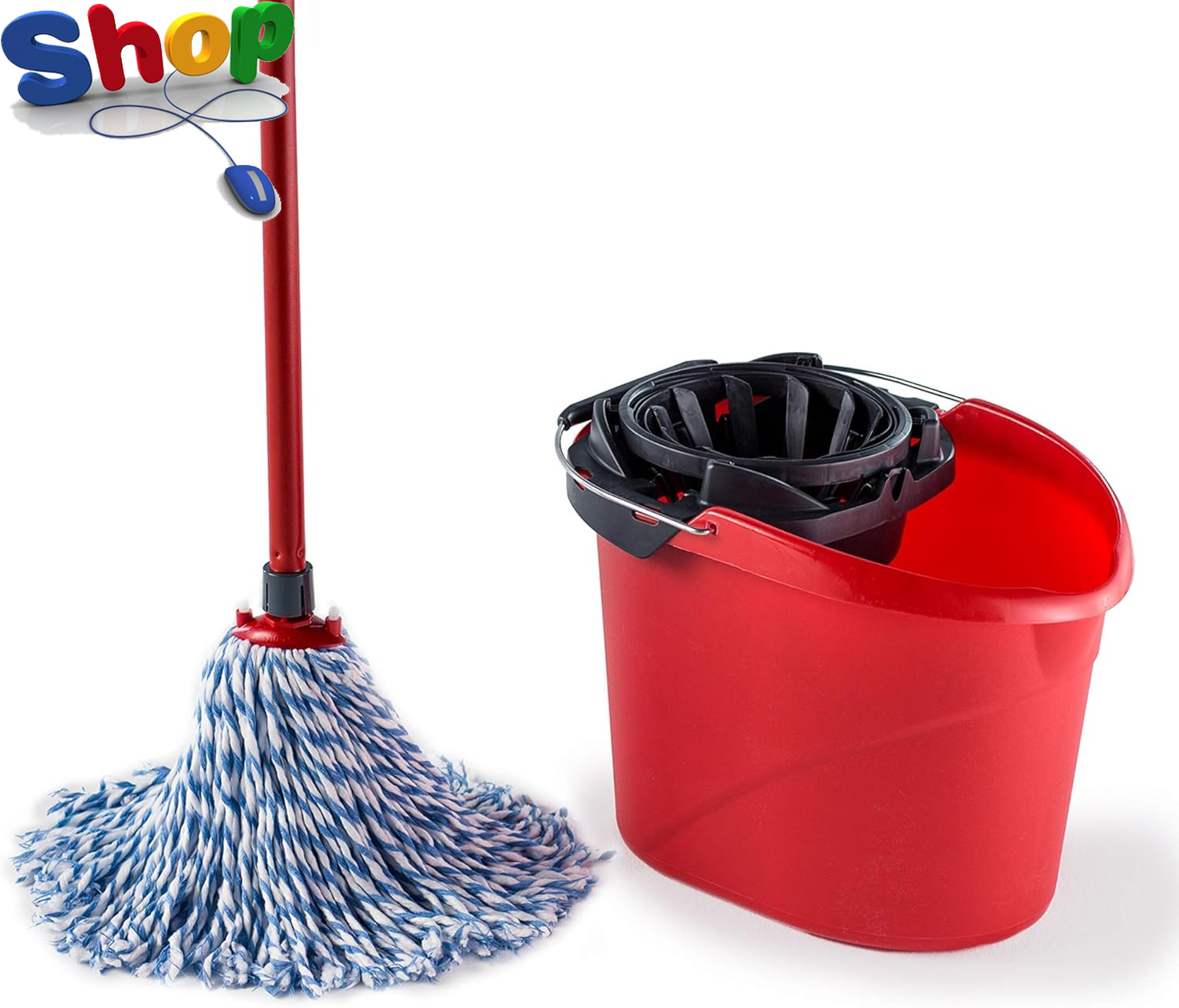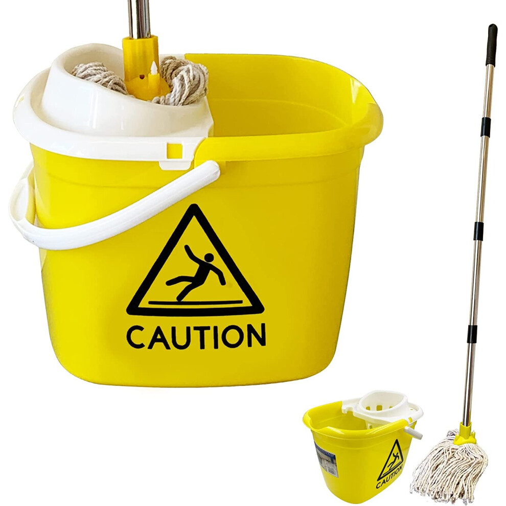 Mop Bucket Set 12L Wringer Cotton Head Handle Industrial Caution Floor Cleaning