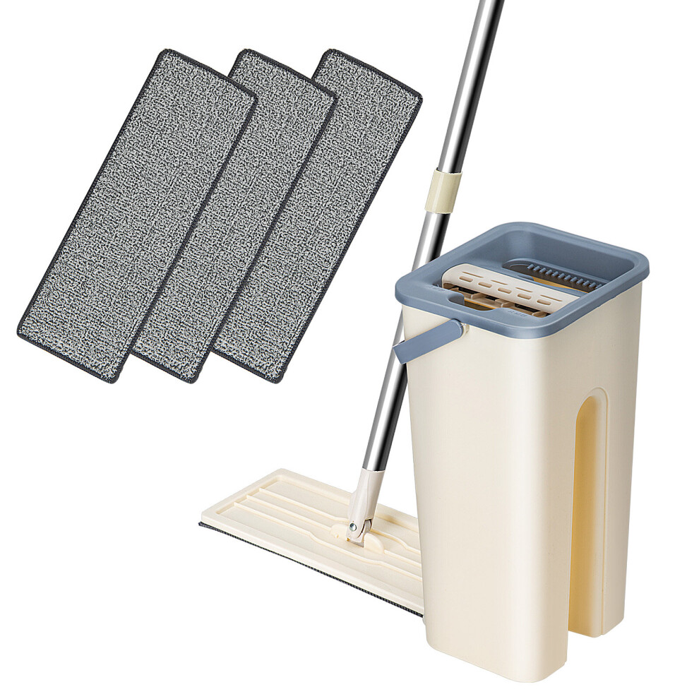 (1 Mop set + 3 Pads) 360° Flat Squeeze Microfiber Tilesr Mop Bucket Set