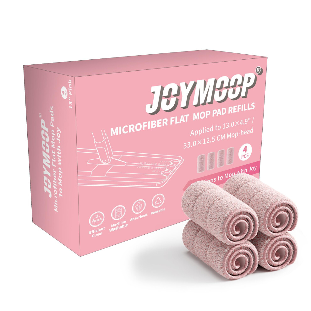 JOYMOOP Flat Mop Pads Microfiber Mop Cleaning Pads Washable Pads Pads Replacement for JOYMOOP Flat Mop or Mop Bucket Set Pack of 4 Refills 13inch