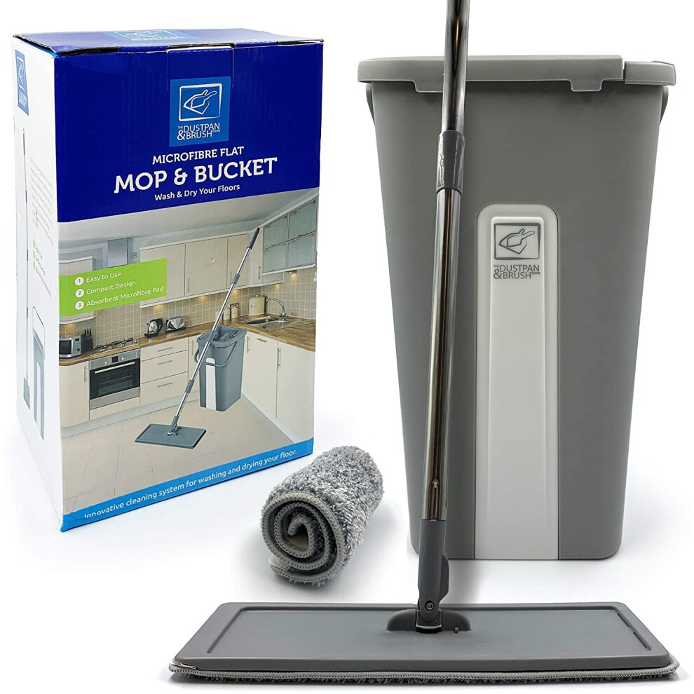 Flat Floor Mop and Bucket Set-Mop Bucket with Microfibre Mop Pads
