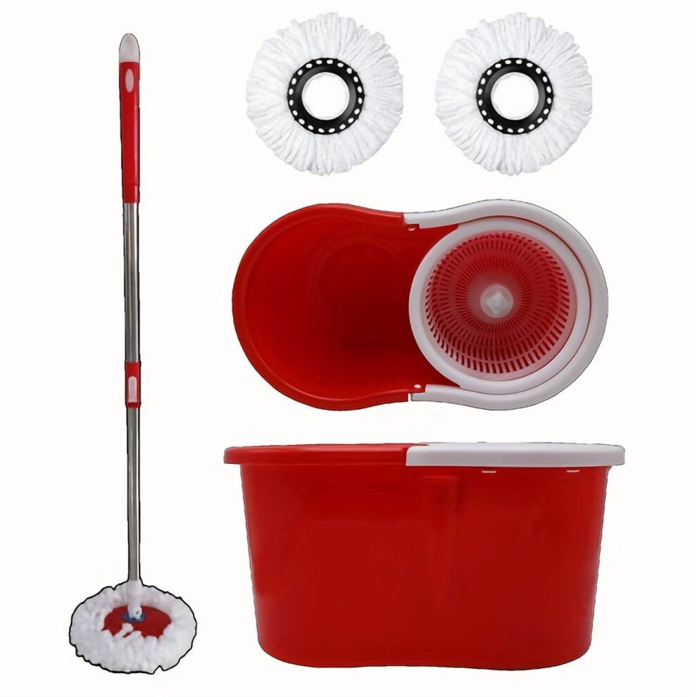 DIVCHI Microfiber Spin Mop and Bucket Set, Spin Mop for Cleaning Floors, Set of 1x Mop, 1x Bucket + 1 Replacement Mop Head, Red/Gray