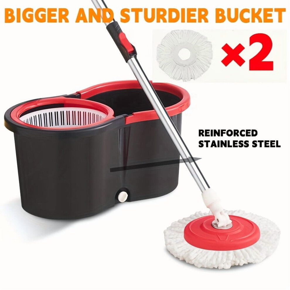 2-in-1 Bucket Spin Mop with Dual Refill, Microfibre Technology for Superior Clean, 360 Degree Telescopic Handle Ensures Ease of Use, Perfect for