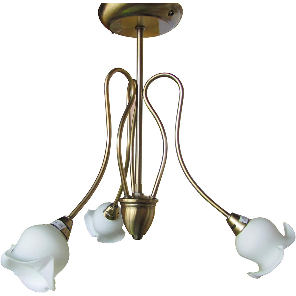 3 Light Chandelier Antique Finish with Flower Bud White Glass Shades