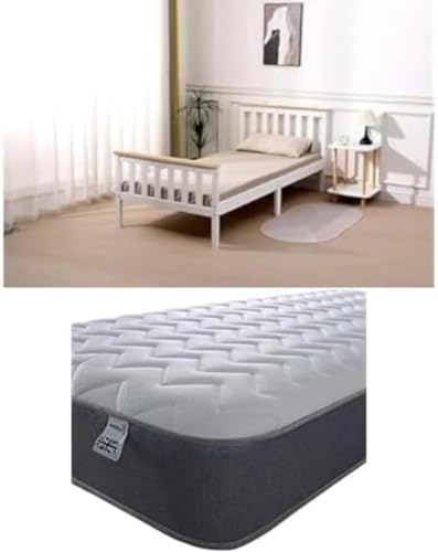 Starlight Beds Bundle of 4ft Small Double Bed Frame (White/Natural) and 4ft Small Double Mattress with Springs and Memory Foam. 7.5 Inch Budget Mattress. Grey, Soft Firmness (120x190x19cm)