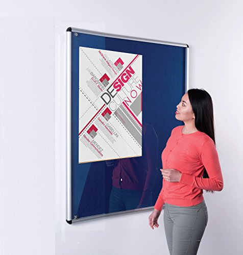 Wonderwall Tamperproof Lockable Noticeboard 120 x 90 cm, Budget Blue Felt Display Pinboard,- with 2 Matching Safety Locks & Keys - Ideal for Office, School, Infor Hubs
