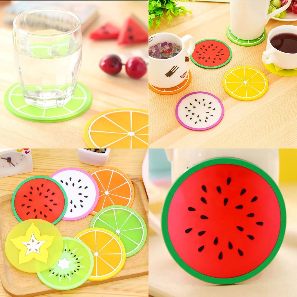 1PC Fruit Coaster Set Colorful Silicone Cup Drinks Holder Mat Tableware Placemat