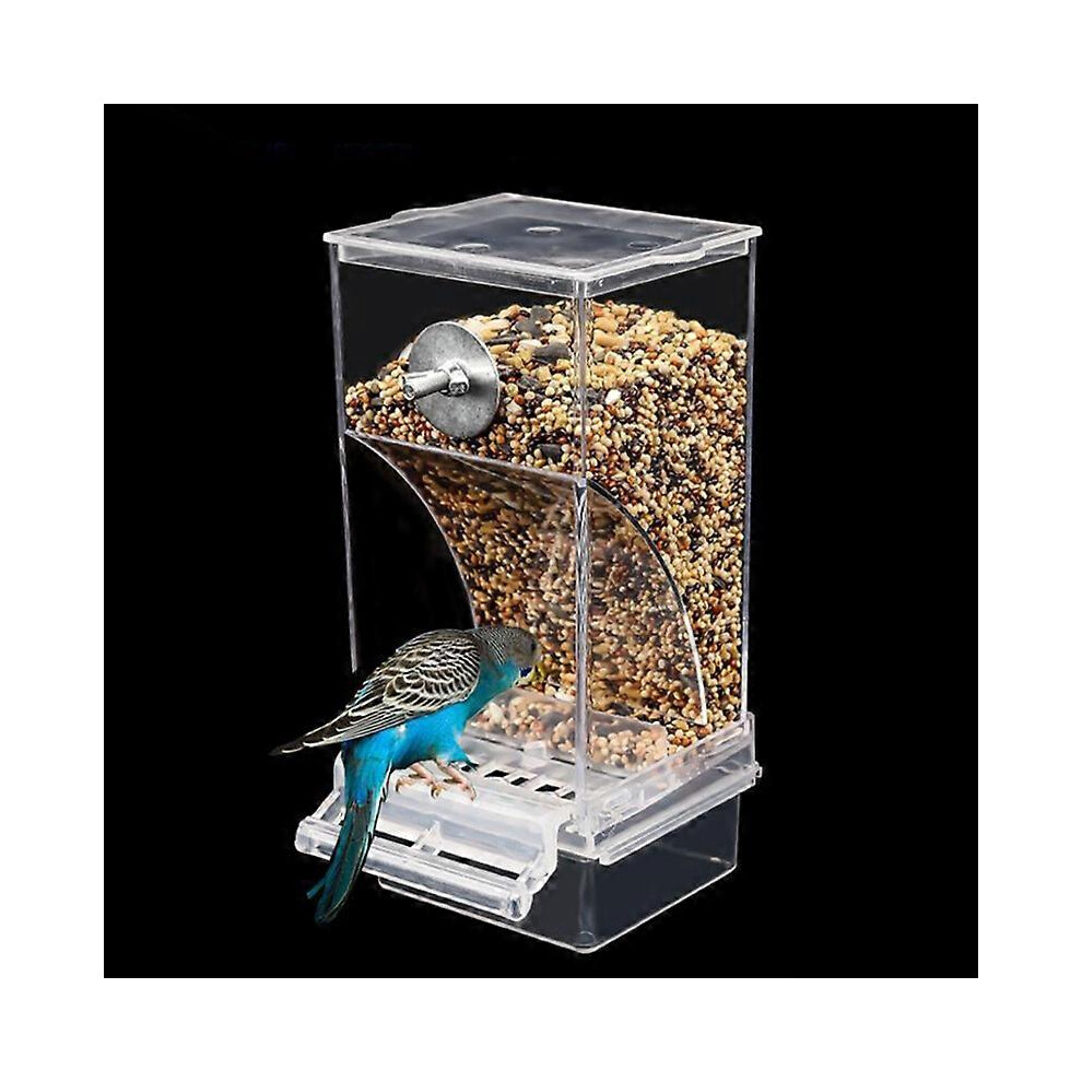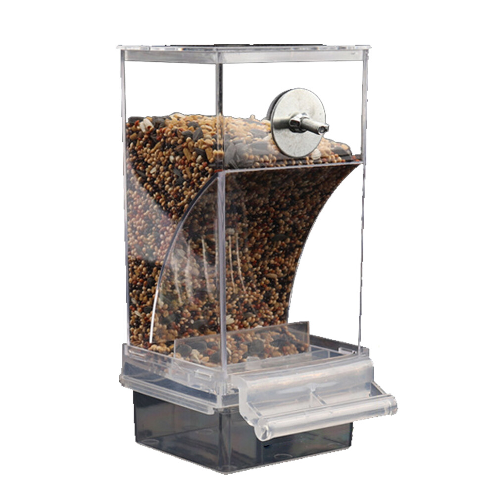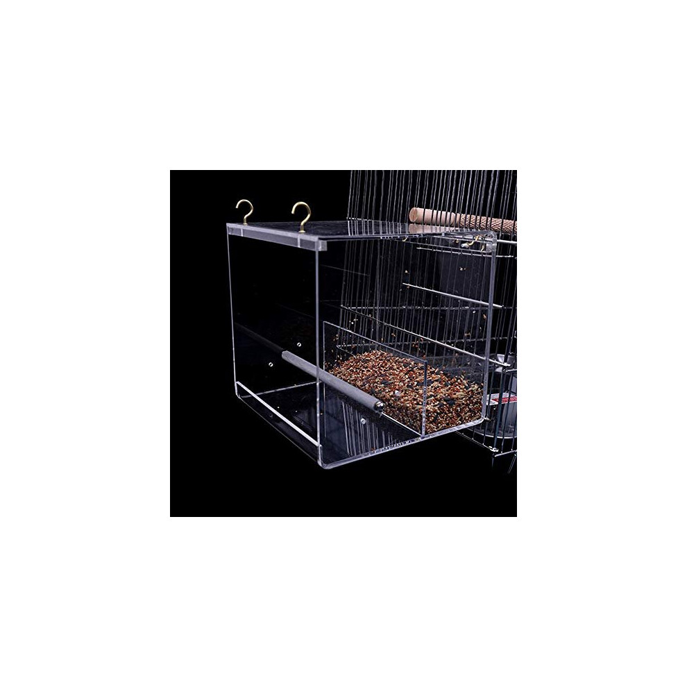 Bird Cage Feeders No Mess Acrylic Automatic Seed Food Container with Hook for Parrot Budgie Cockatiels