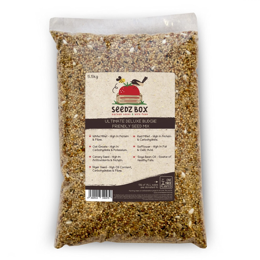 Budgie Food Seed Feed Mix 5.5kg - Natural Healthy Treats and Snacks for Pet Budgerigars - SeedzBox - Red Millet, Canary and Niger Seeds - Protein and