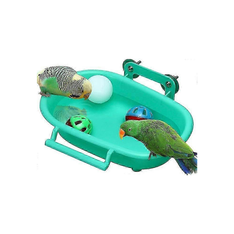 (As show, One size) Large Bird Bath for Bird Cage with 3 Balls Bird Water Bowl Budgie Bathtub Bird Food Feeder Shower Tray Parrot Bathtub Budgie Toy B