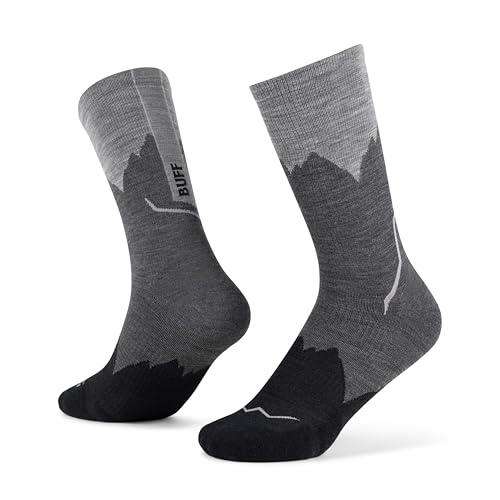 Buff| Socks LW Merino Wool Crew Lightweight, Hiking, Natural Resistance, Comfort, Cushioning, M, Grey