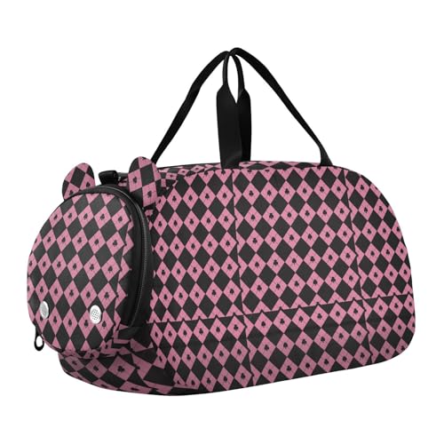 Buffalo Plaid Pink Black Poker Valentines Girl's Gym Duffel Bag with Shoes Compartment Lightweight Gymnastics Sports Bag for Travel, Swimming, Dance, Ballet bolsos de viaje