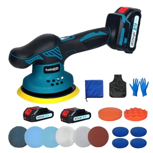 Traderight Cordless Car Polisher, 2 * 21V 2.0Ah Rechargeable Batteries Car Buffer Polisher Machine with 6-Speed 3700–5500RPM, 6in Dual Action Polisher for Car Waxing, Scratch Repair & Polishing