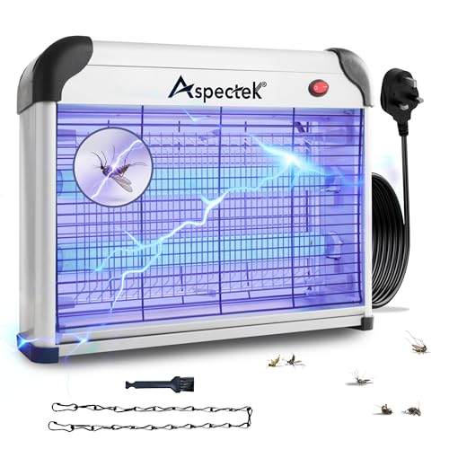 ASPECTEK Electric Bug Zapper 20W 2800V – Indoor Insect Killer & Fly Trap for Home, Kitchen and Office, UV Mosquito Killer Lamp for Flying Insects (Flies, Moths, Gnats), High Voltage Grid (UK Plug)