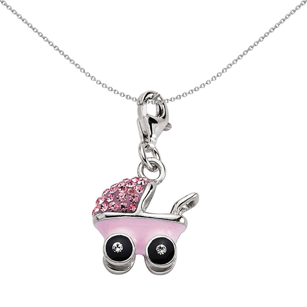 Jewelco London Sterling Silver Pink Crystal Buggie Pram Charm - CM123