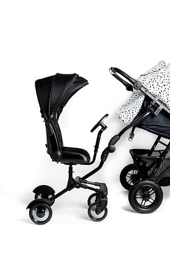 BugyKido Buggy Board with Seat, Universal Pram Standing Board for Children, Pram Accessory from 2-6 Years (25 kg), for Over 99% of Baby Carriages (Black Wheels)