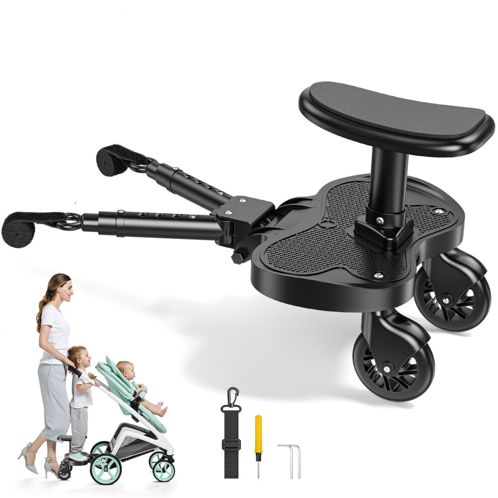 Shoze Universal Kiddy Boards, Portable Buggy Board with Seat, Pram Standing Board,Stable Two Wheel Design,360 Rotation,Pram Accessory for Children f