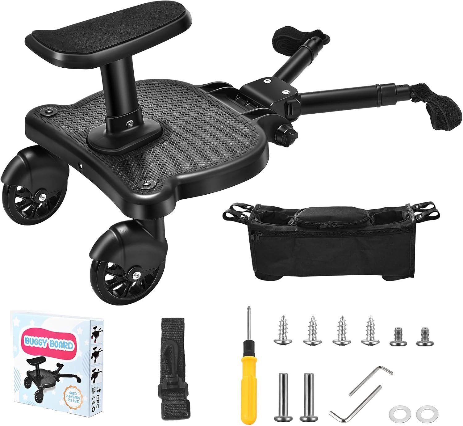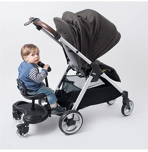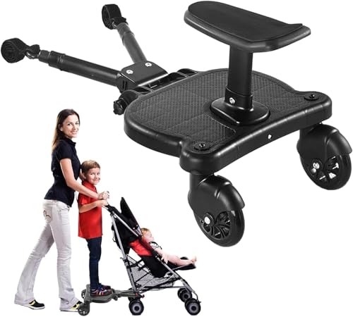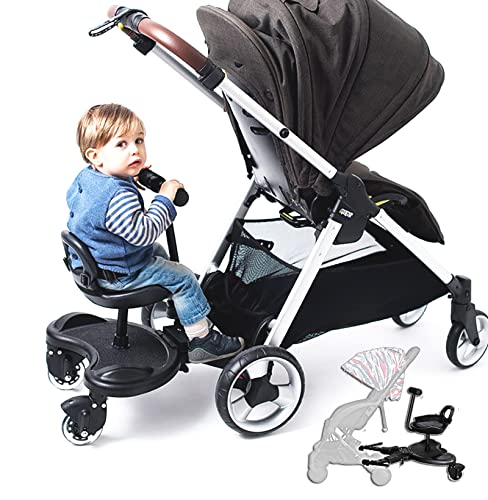 Buggy Board with seat, Standing Board, Toddlers Stroller Board Kiddy Board Stable Two Wheel Design with Seat, Standing Board fits Any Pushchair (Black)