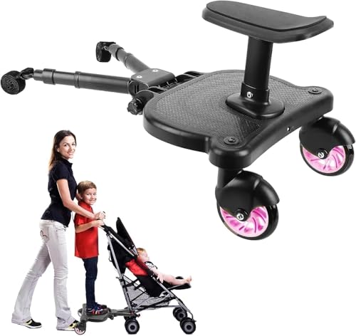 Buggy Board with seat, Standing Board, Toddlers Stroller Board Kiddy Board Stable Two Wheel Design with Seat (Pink)