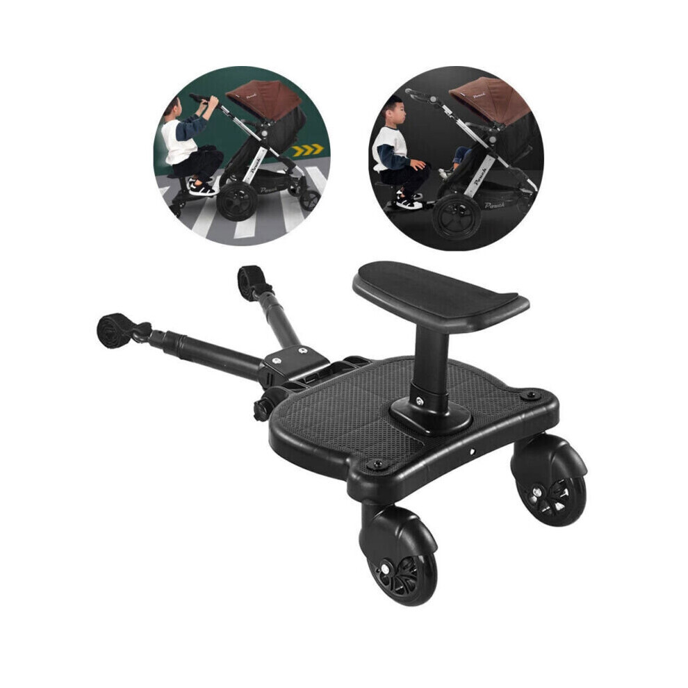 Buggy Board with seat, Standing Board, Toddlers Stroller Board Kiddy Board Stable Two Wheel Design with Seat, Standing Board fits Any Pushchair (Exte