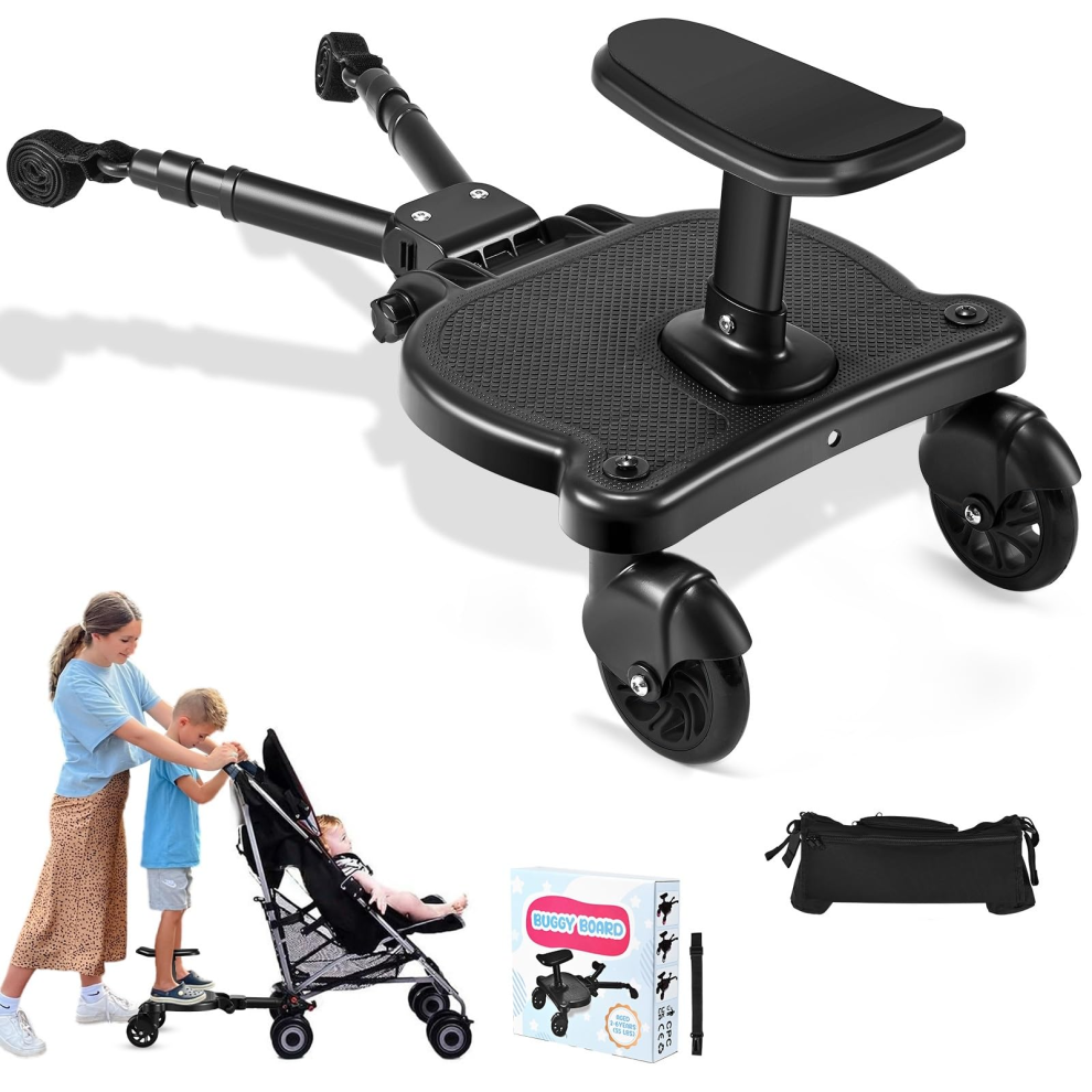 Shoze Universal Kiddy Boards, Portable Buggy Board with Seat, Pram Standing Board,Stable Two Wheel Design,360 Rotation,Pram Accessory for Children f