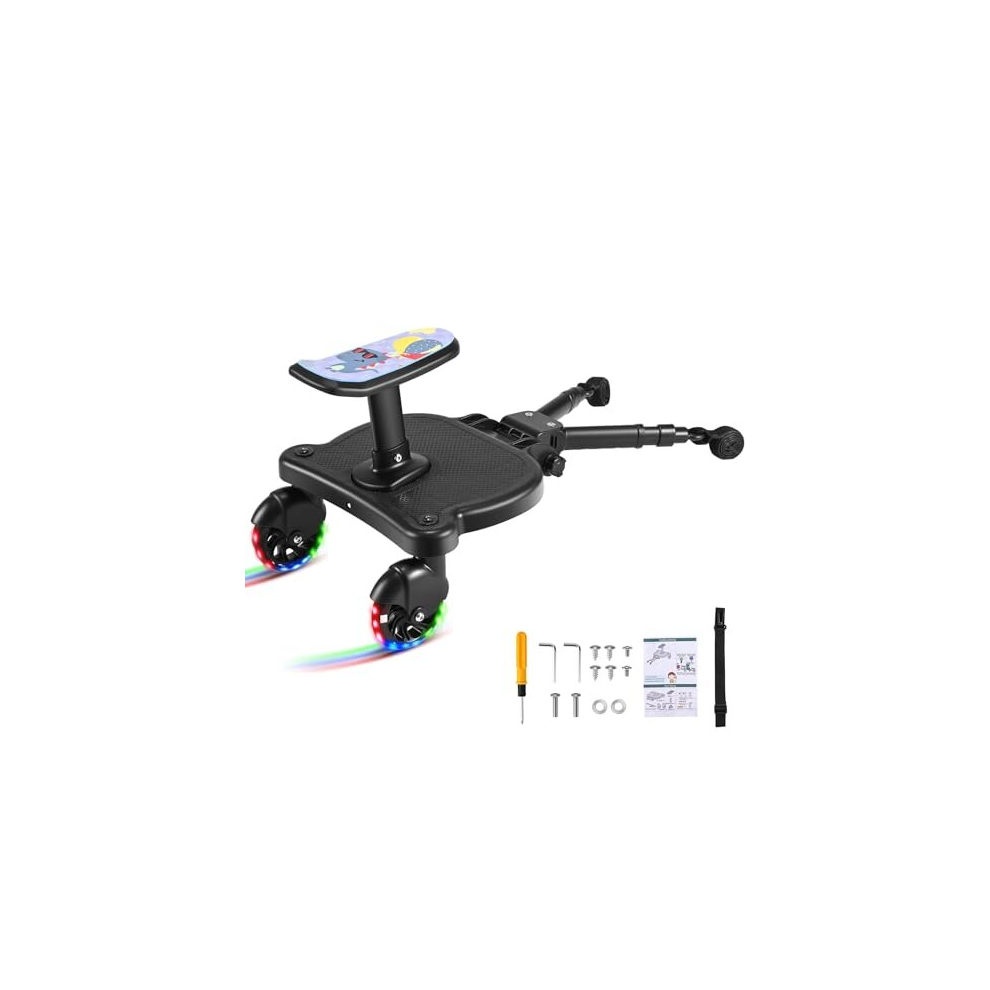CozyGoo Universal Buggy Board with Seat & LED Wheels - Adjustable Ride-On Board for Strollers, Safe & Fun Buggy Board for Kids Aged 2-6 Years, Supports Up to 25 kg, Perfect for Family Adventures