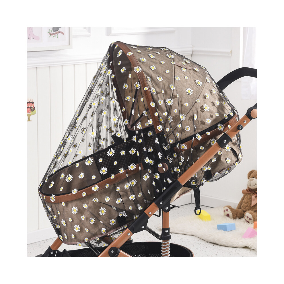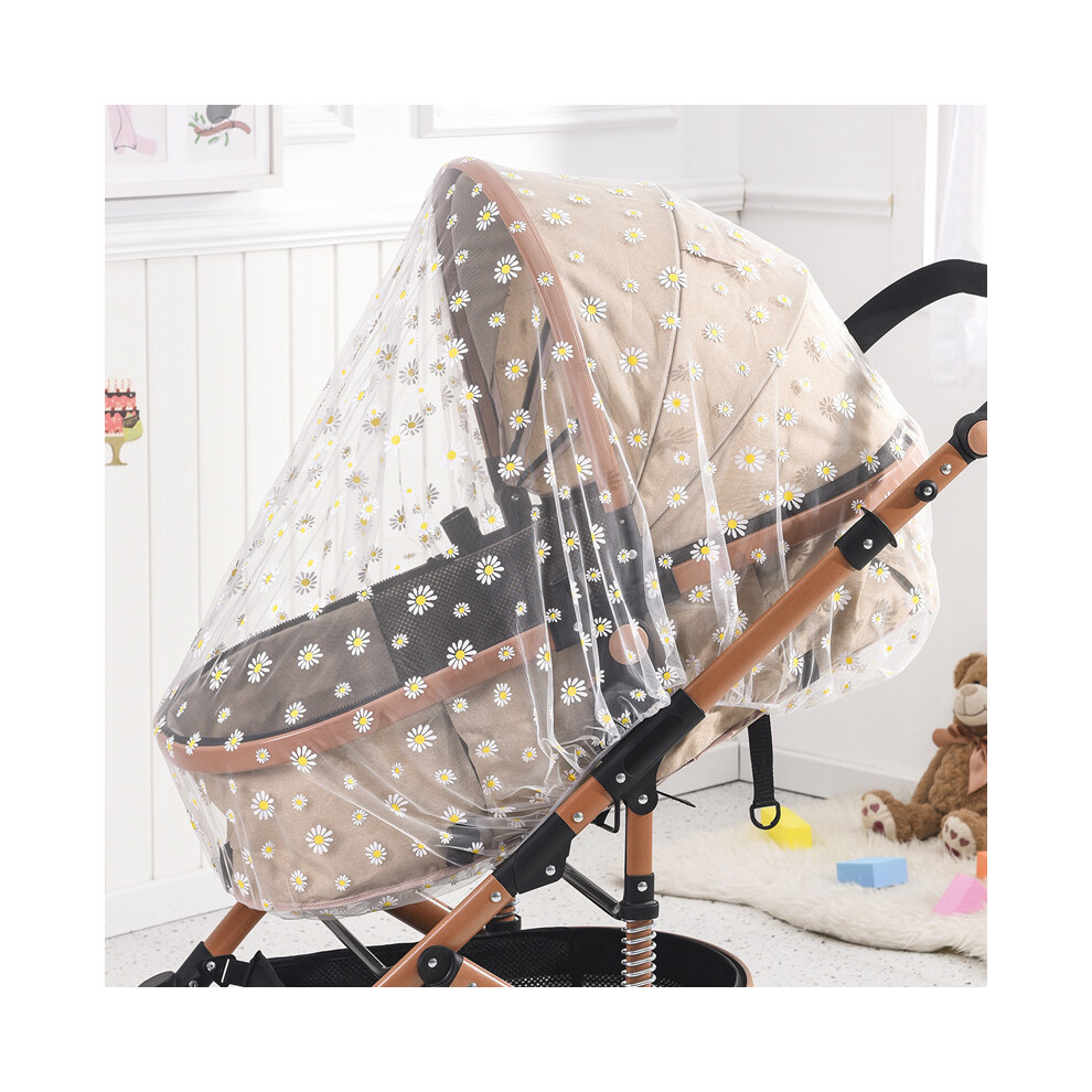 (White Daisy) Universal Pram Net Baby Sunshades Mosquito Net Buggys Insect Net Fly Net Protection Cover for Stroller Pushchair