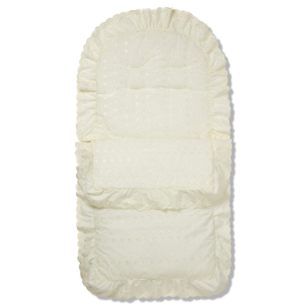 Broderie Anglaise Frilly Universal Fitting Footmuff for Pushchairs Strollers Prams Buggys - Pure Cream