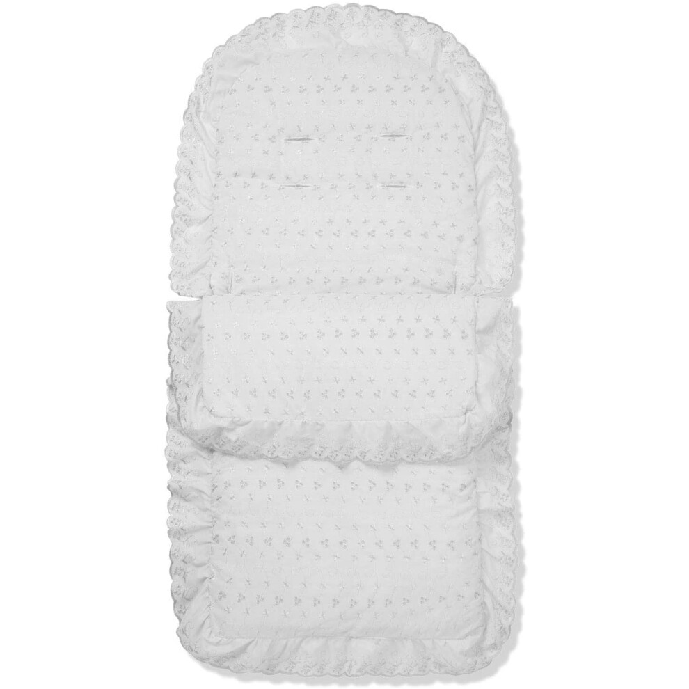 Broderie Anglaise Frilly Universal Fitting Footmuff for Pushchairs Strollers Prams Buggys - Pure White