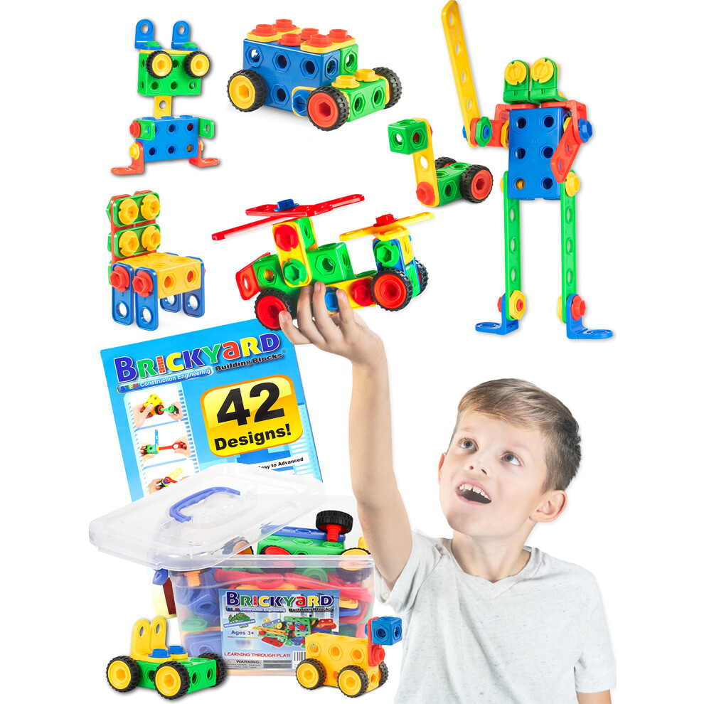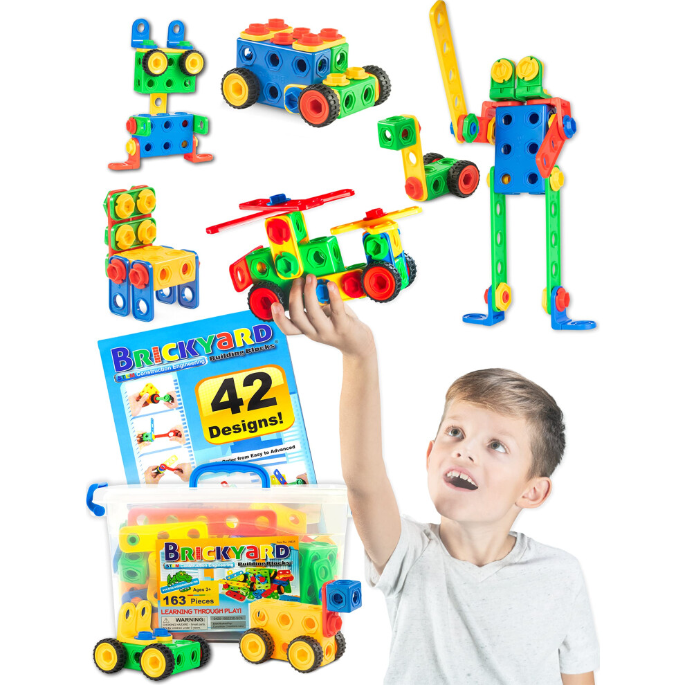 Brickyard Building Blocks STEM Toys - Educational Building Toys for Kids Ages 4-8 with 163 Pieces Tools Design Guide and Toy Storage Box Gift for B