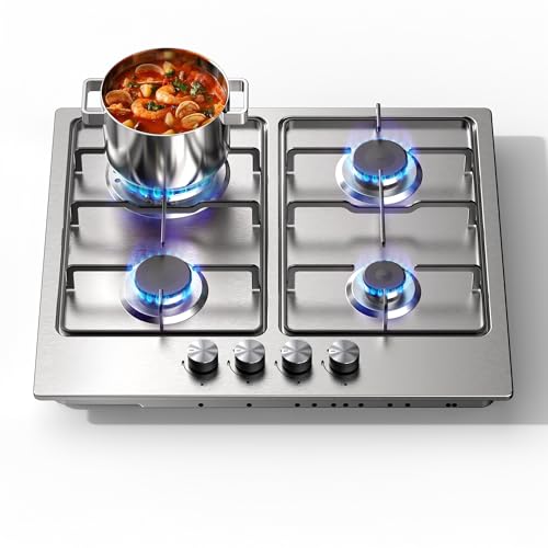 SNDOAS Gas Hob 4 Burners 60cm Stainless Steel Cooktop Built in Gas cooker Hob