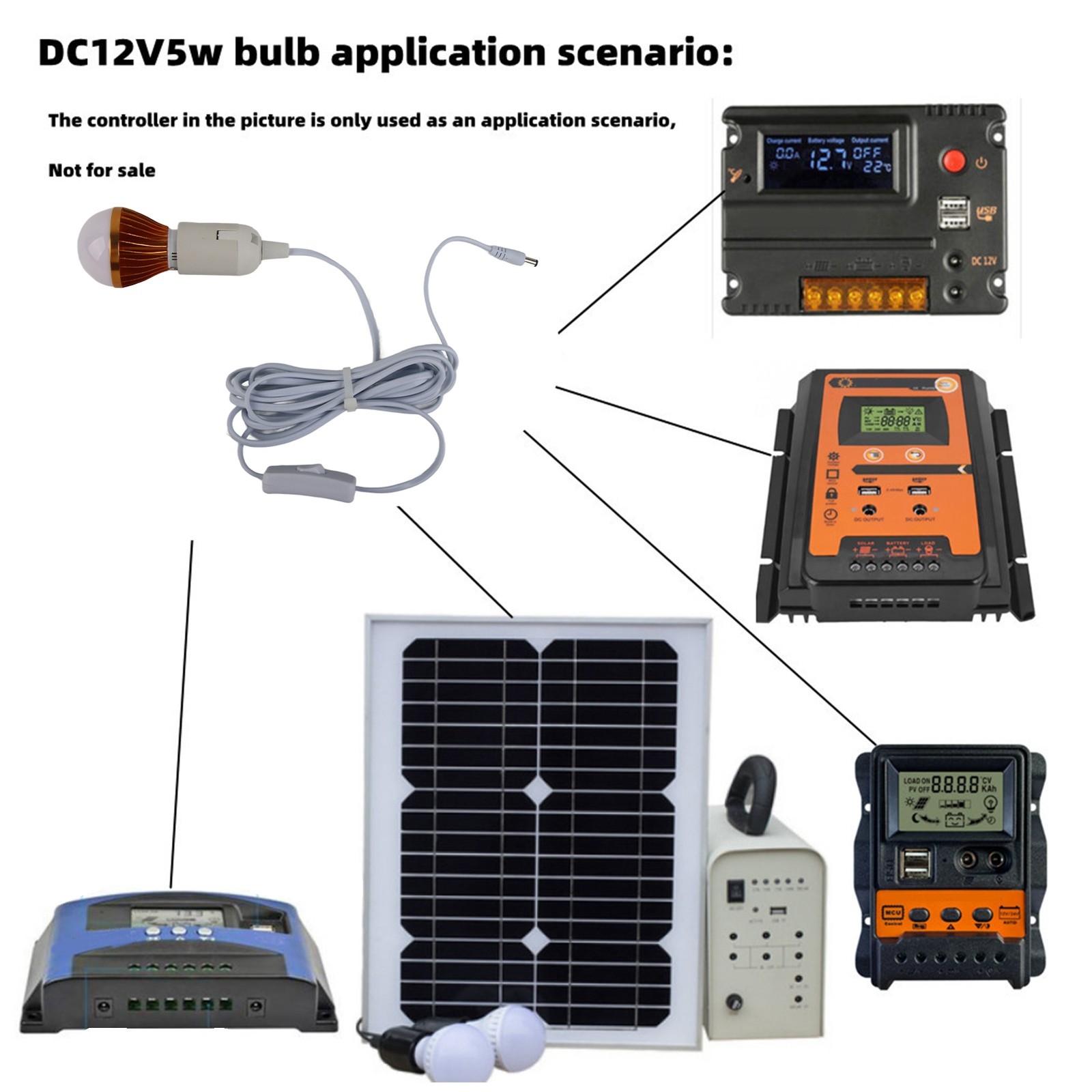 E27 Ball Bulb Spiral LED Solar White Light For Camping Tent 12V 5W W/ 3meter DC