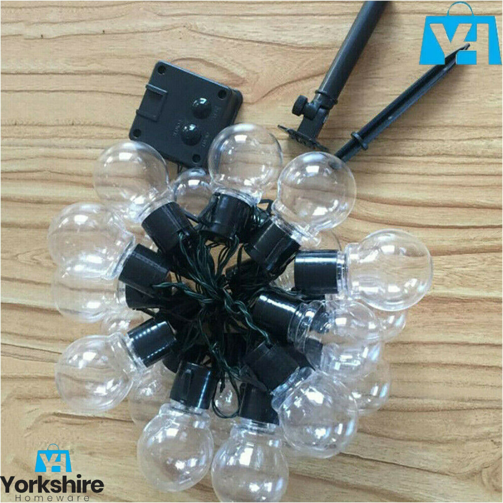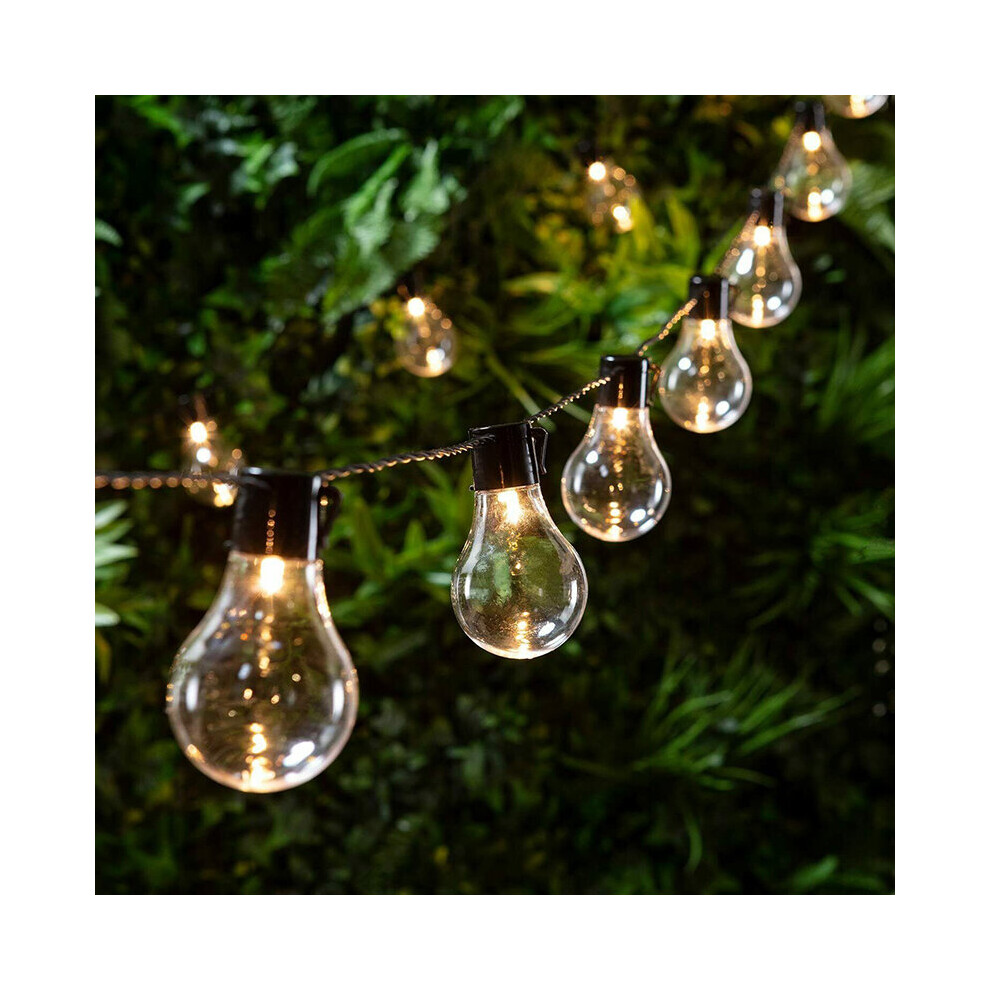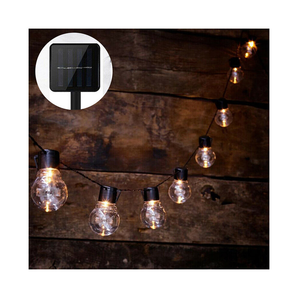 20 LED Retro Bulb String Lights Solar Powered Garden Transparent Warm White