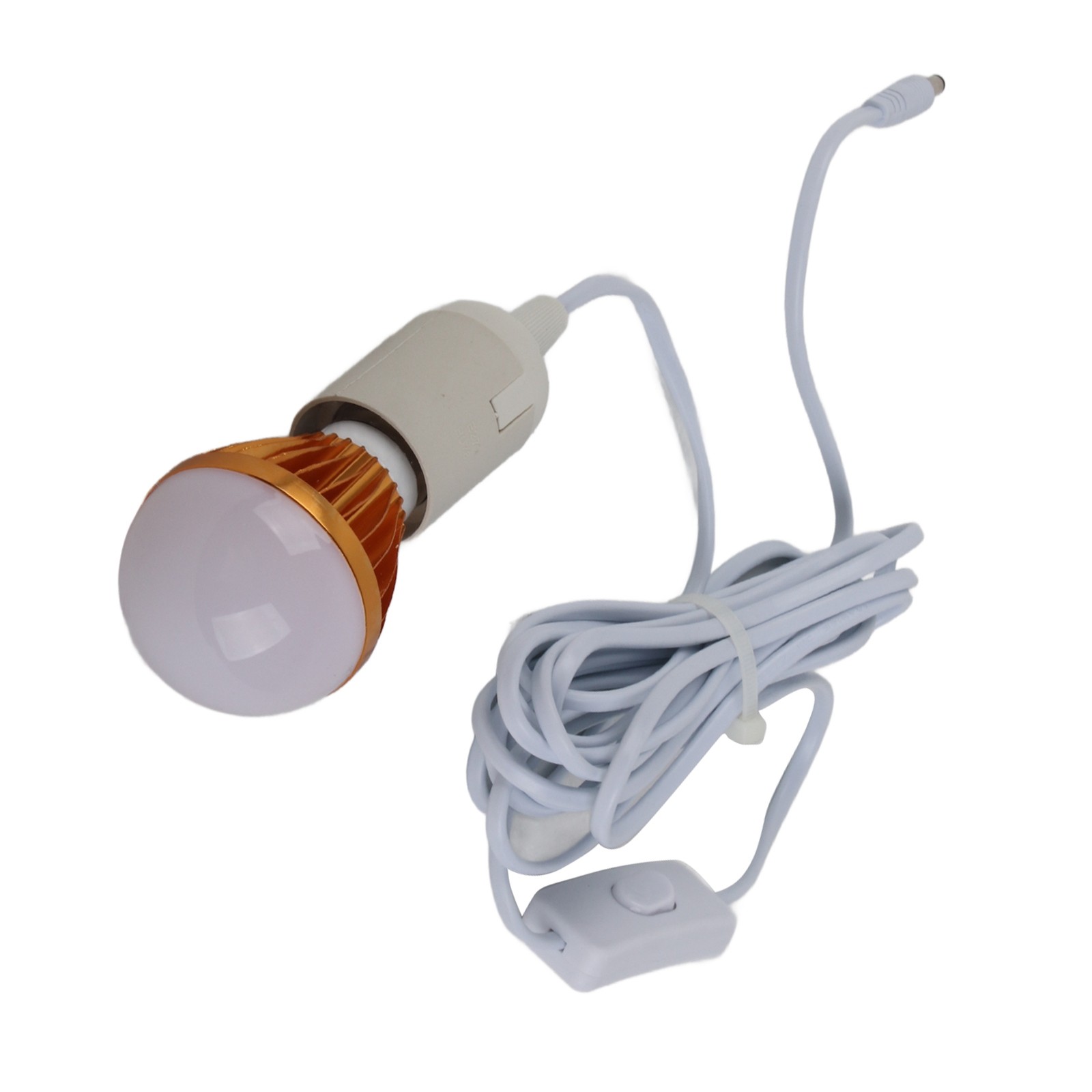 E27 Ball Bulb Spiral LED Solar White Light For Camping Tent 12V 5W W/3meter DC