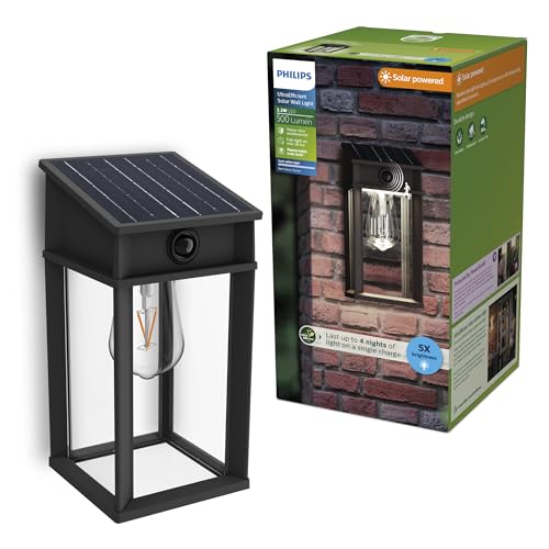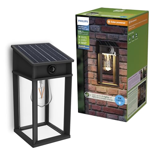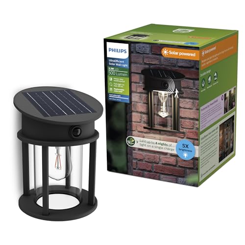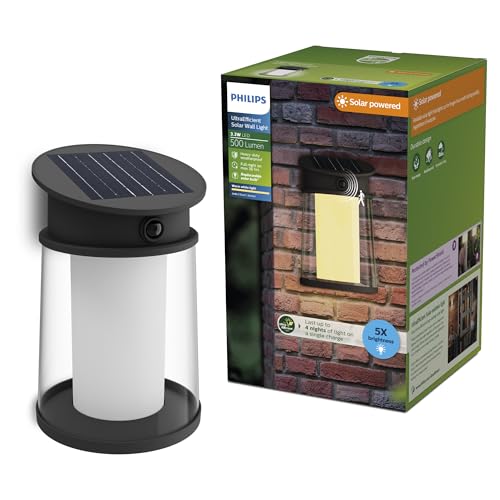 Philips Lysin UltraEfficient Outdoor Solar Wall Light, Replaceable Solar Bulb, Motion Sensor, 2700K, Black