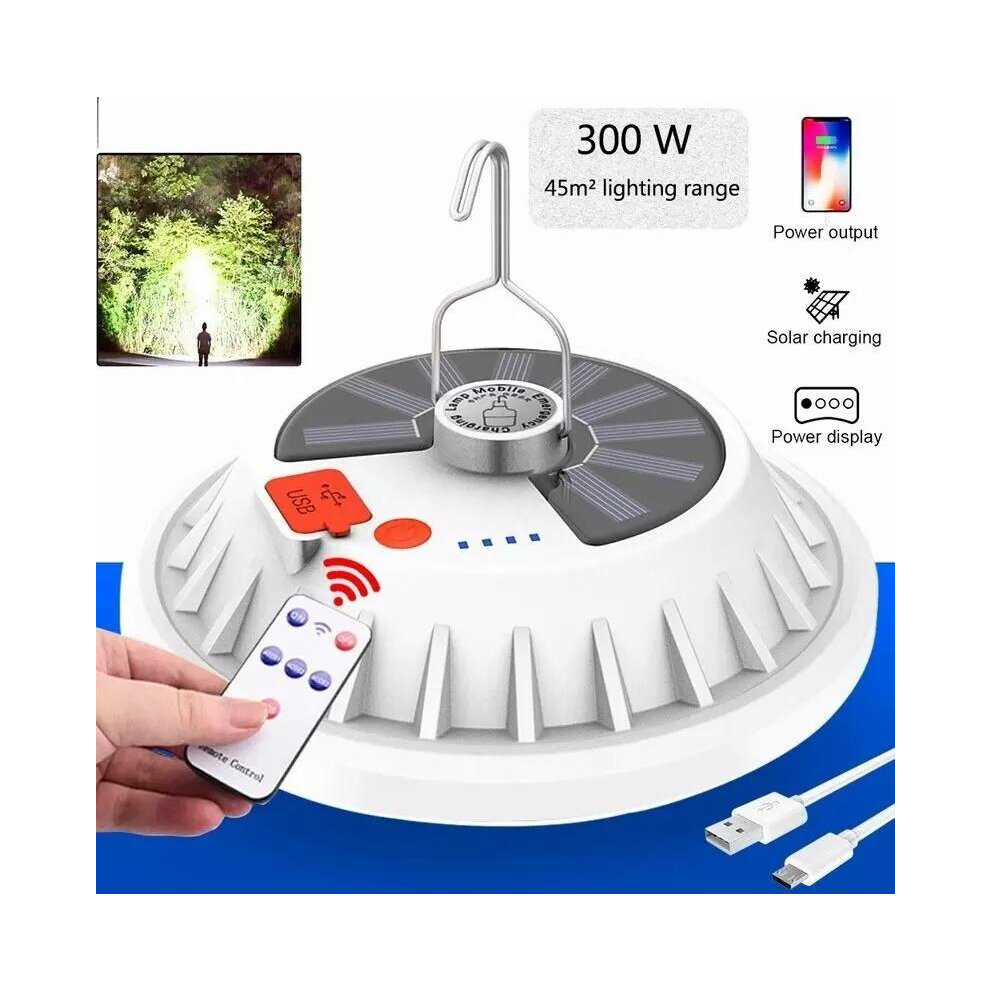 Elydiva Remote Control 300W Rechargeable LED Bulb Lamp Solar Charge Lantern Portable Emergency Night Market Light