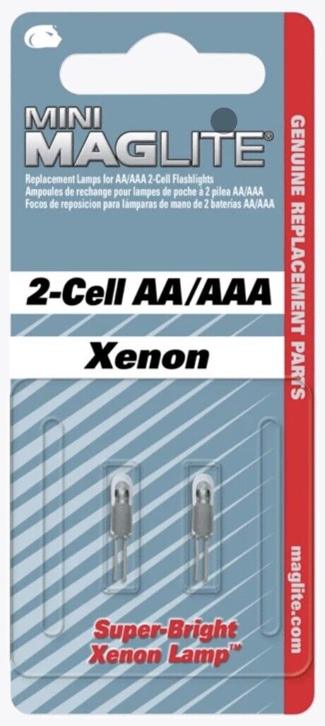 MAGLITE Pack of 2 Xenon Bulbs for 2-Cell AA/AAA Torch LM2A001L "NEW & SEALED"